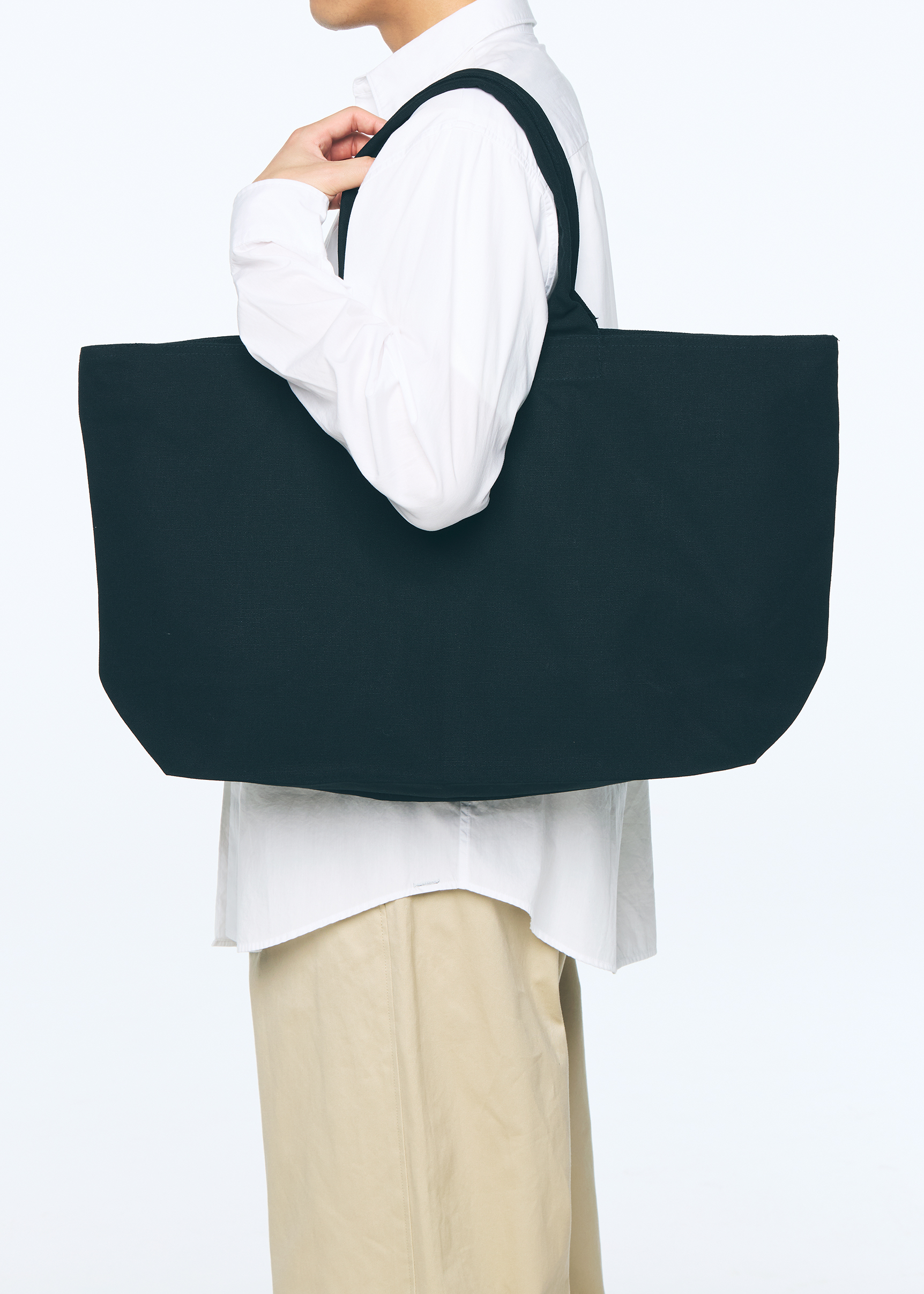 ファスナー付きで便利な内ポケット付きのビッグトートバッグ 約25Lの容量は、トラベルバッグとして申し分なしの大きさ。