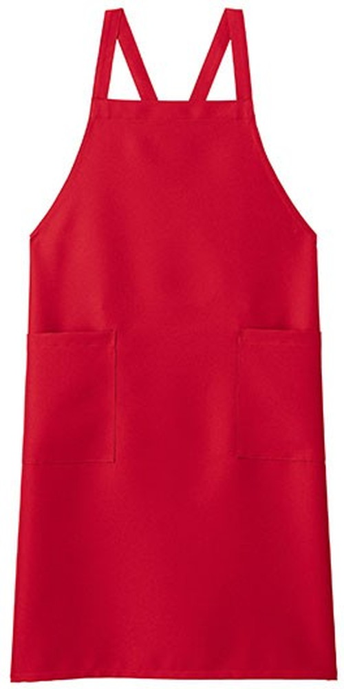 みんなで揃えやすいリーズナブルな価格と、豊富なカラーバリエーションで着る人やシーンを選ばない定番スタイルのX型胸当てエプロン。