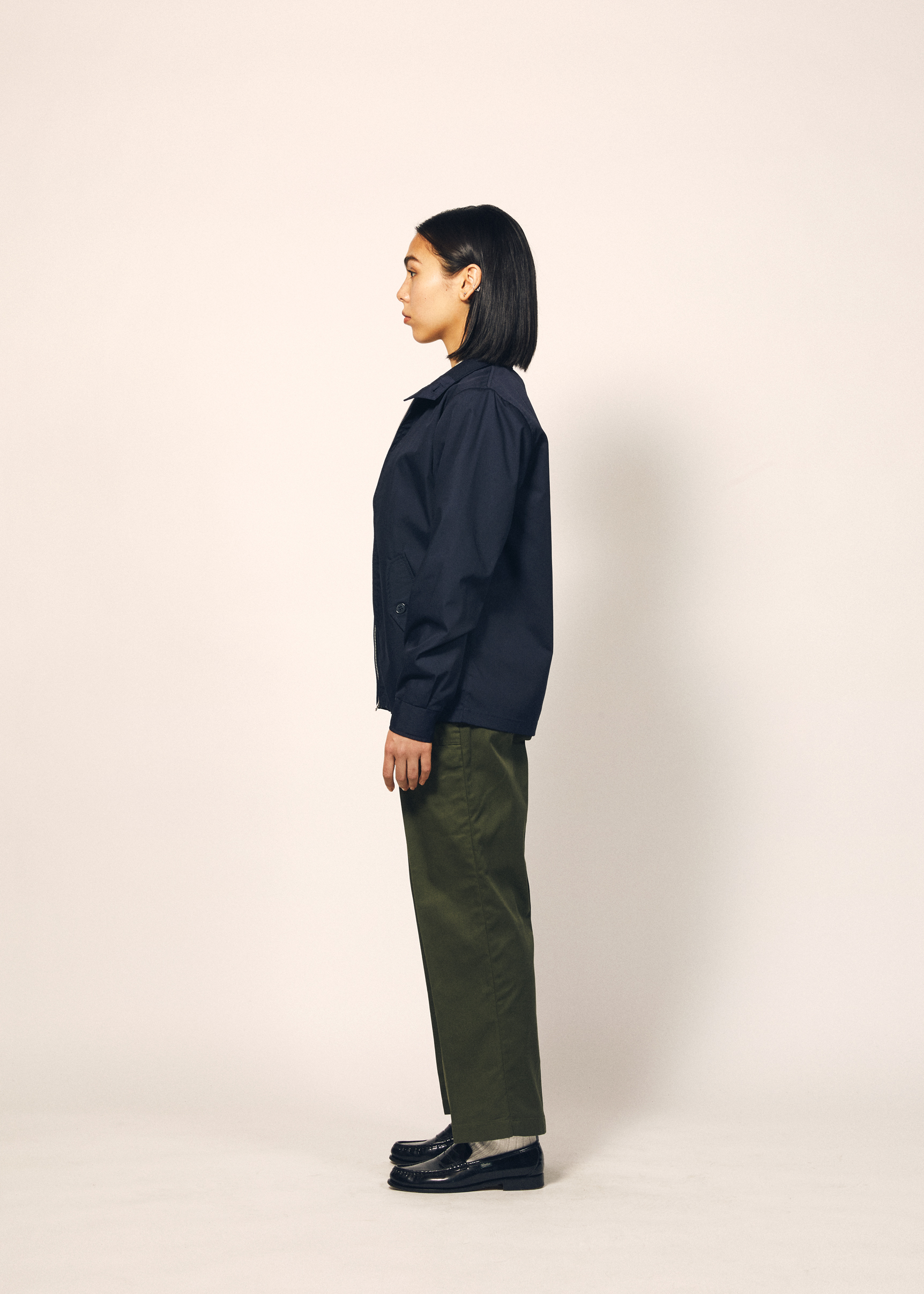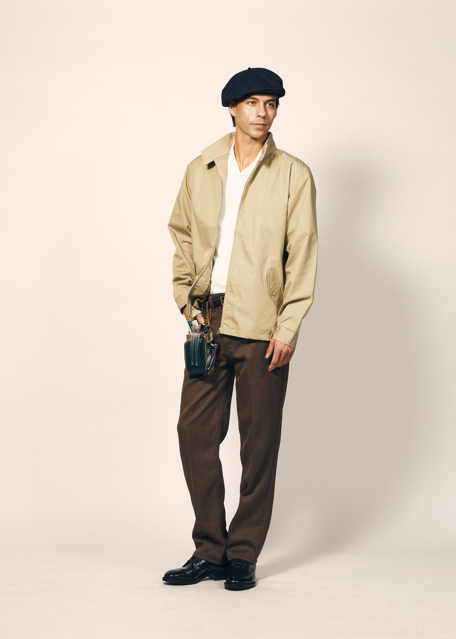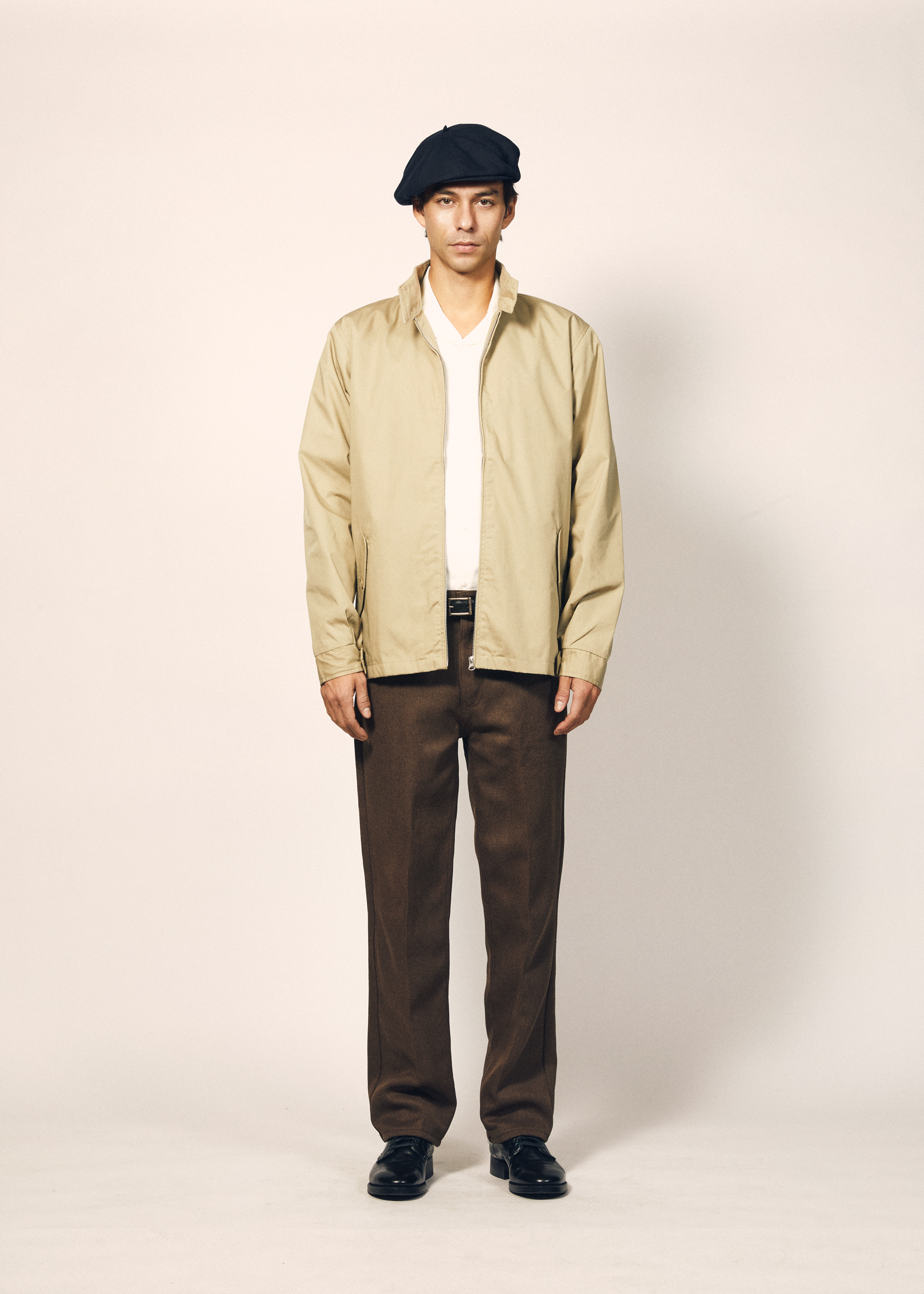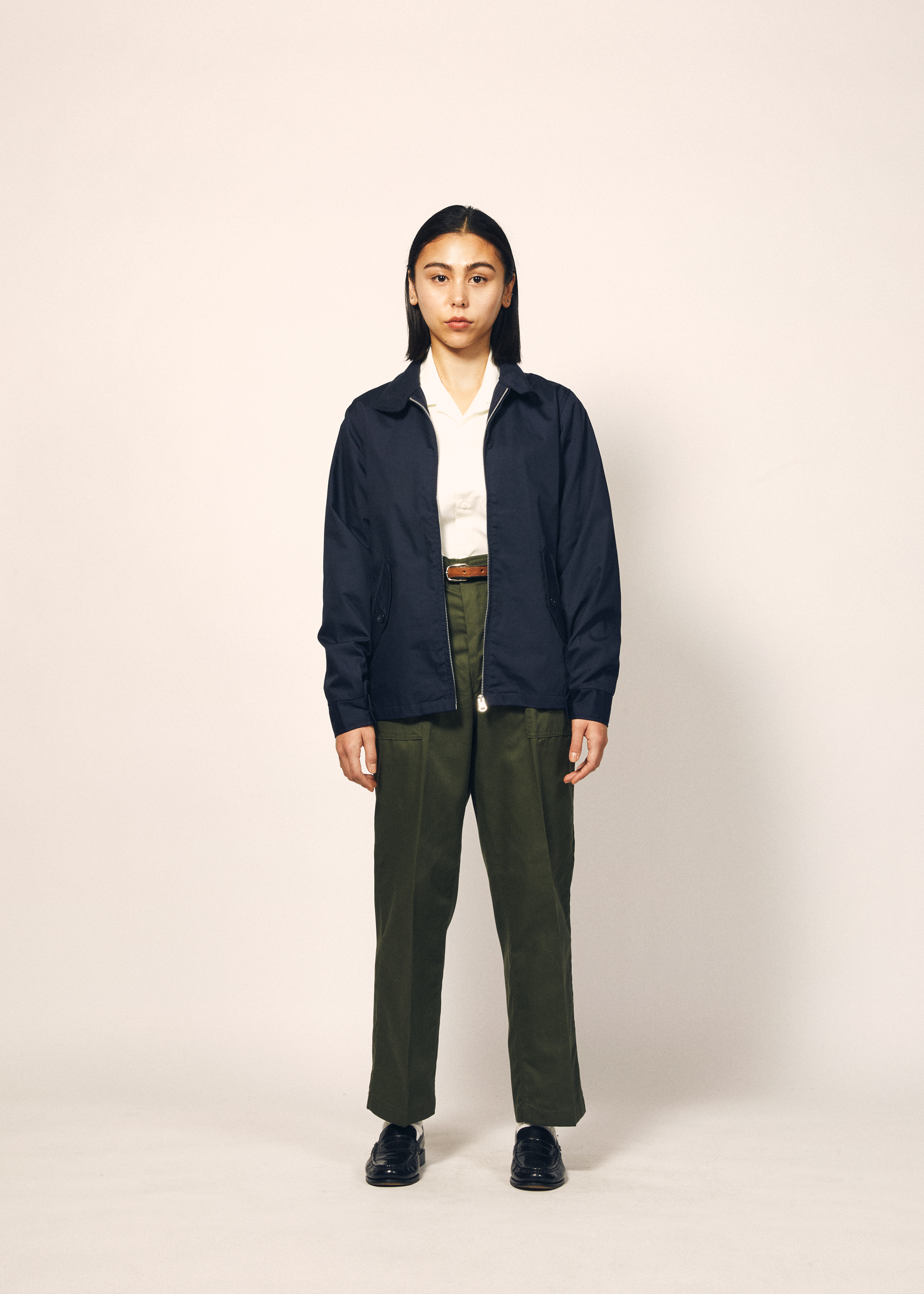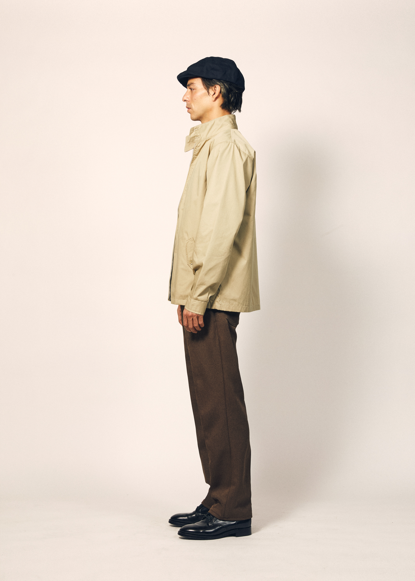ポリエステルの耐久性と綿の快適性を兼ね備えた型崩れの少ないT/Cウェザーのスタジアムジャケット