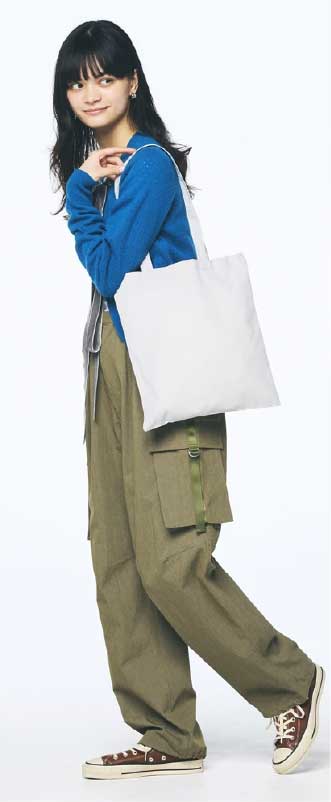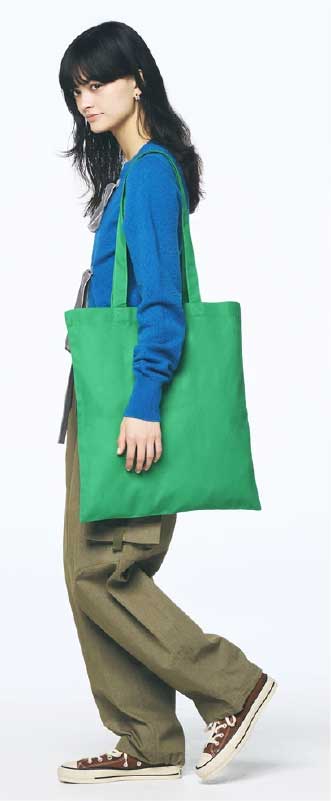 長めのハンドル&薄手でカジュアルな生地がこなれた印象の万能トートバッグ。日常づかいとしてはもちろん、イベント物販、ショッパーや販促物など幅広いシーンに使えます。
