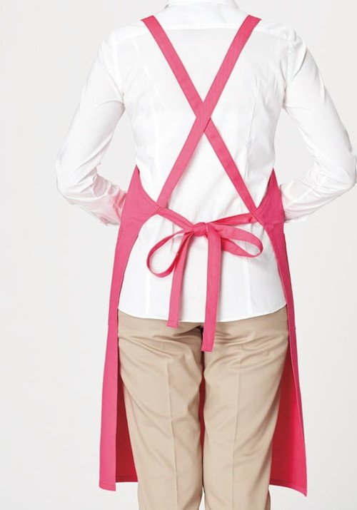 みんなで揃えやすいリーズナブルな価格と、豊富なカラーバリエーションで着る人やシーンを選ばない定番スタイルのX型胸当てエプロン。