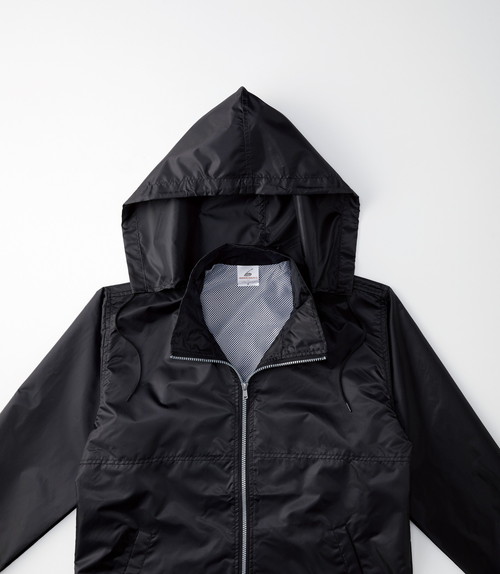 襟にフードを収納していますので、突然の風や雨にも素早く対応することができます。天候が大きく影響する屋外のイベントなどに最適です。